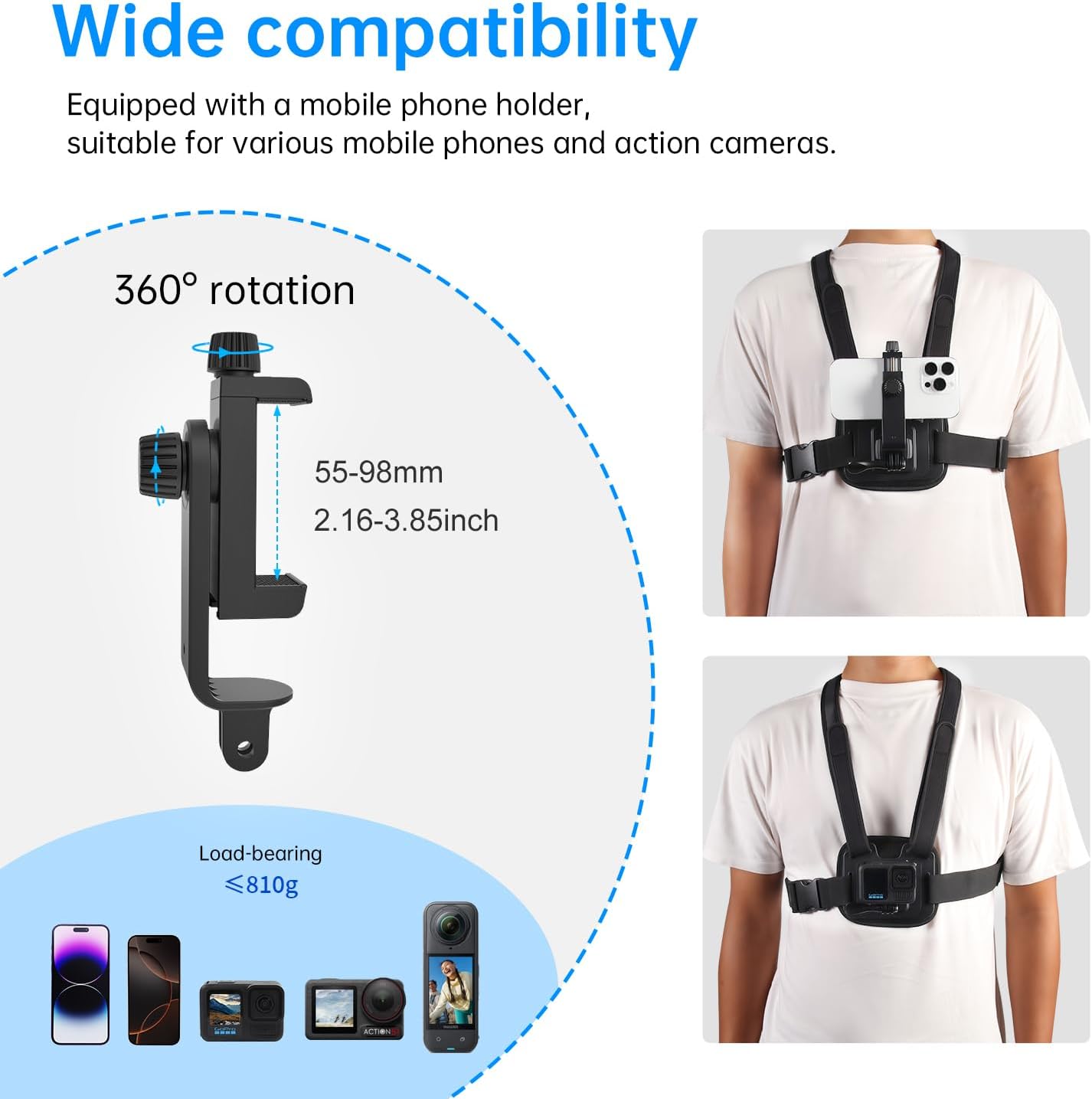 Upgraded Dual-Shoulder Fixation: The dual-shoulder webbing has been upgraded to effectively reduce phone shaking during bumpy activities such as walking, cycling, and running, ensuring clear and stable video recording.