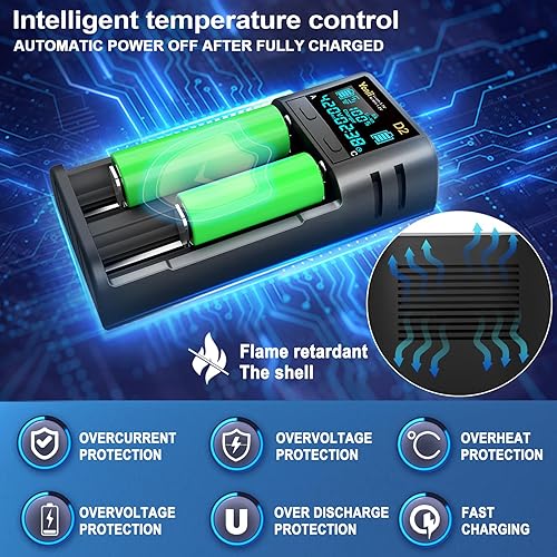 Intelligent LCD Display:Large screen displays charging voltage, charging current, charging time, battery type, battery power percentage, easy to understand the charging data. Independent charging, non-interference, full charge automatic stop, automatic judgment 1.2V nickel-metal hydride battery and 3.6/3.7V lithium battery