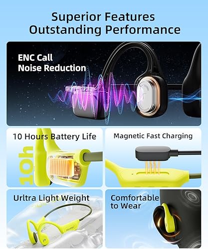 Clear Calls & Superior Audio Experience: Our bone conduction headphones with mic are equipped with Environmental Noise Cancellation technology, delivering crystal-clear audio during calls, even in noisy environments. The 16mm drivers provide rich, high-fidelity sound, whether you are listening to music or taking a call. Enhance your communication and audio enjoyment wherever you go.