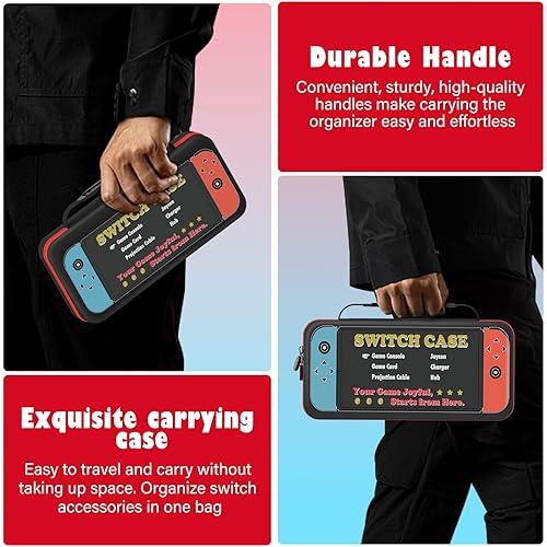 Switch Carrying Case for Nintendo Switch OLED/LITE, Protable Slim Light Travel Storage Bag Pouch for Console Joycon & Video Game Accessories, Protective Hard Shell Cover with Handle, Gift to Boy Girl