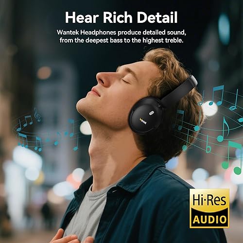 Low Latency, No Catton:Wantek wireless headphones features the latest Bluetooth 5.3 technology for an effective range of up to 33ft (10m), ensuring a stable connection without drops. Pairs quickly within 1-3 seconds after powering on.Auto-connect memory function: Simply turn on the headphones next time for instant pairing.Simultaneously connects to two devices, handling both entertainment and calls seamlessly