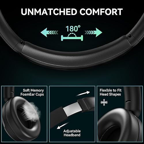 Pressure-Free Comfort:Over ear headphones features ultra-soft protein leather earcups with memory foam padding for a snug, comfortable fit over the ears. Adjustable headband accommodates different head sizes.Foldable design for easy storage and portability. Lightweight build ensures comfort during extended listening sessions
