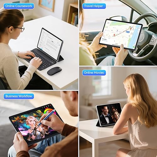 [Dual-Function 2-in-1 Tablet] This 10 inch tablet is a game-changer with 2-in-1 professional work mode. The tablet is compatible with a Bluetooth keyboard, mouse, stylus, stand, and a convenient foldable case. The setup and connection process is straight forward, enabling you to effortlessly transform your tablet into either a laptop or a computer mode