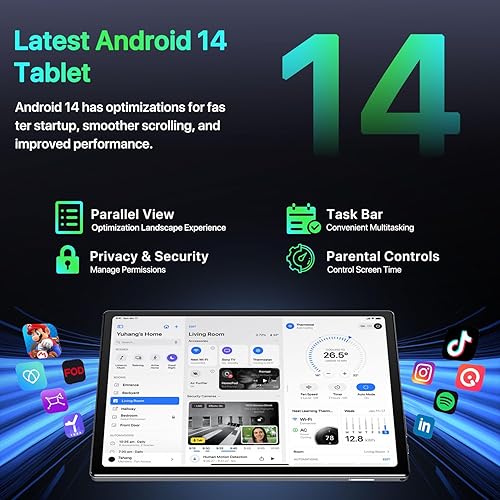 2025 Latest Android 14 Tablet - The latest Android 14 OS represents a significant upgrade in speed, security, and user experience. Android 14 tablet include enhanced performance and efficiency and predictive functions, optimized multitasking capabilities, and a refined user interface that enhances overall usability and customization options. Android 14 Tablet has been certified by play store, any apps in play store you can get easily.