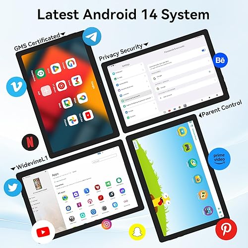 2025 New Android Tablet - Powered by the latest Android 14 AUMIOS system and A523 Octa-Core processor, the tablet improves the performance and efficiency, gives users more control over their data and personal information, and enhances user information protection and accessibility features. Tablet use more efficient, an excellent companion for life