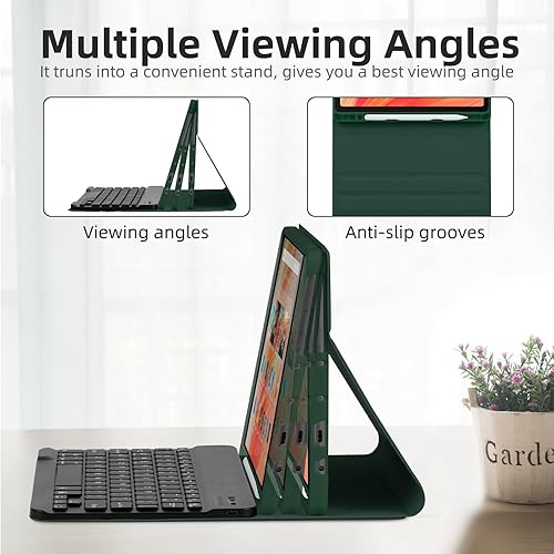 【Multi-Angle Adjustment, Detachable Keyboard】The protective case has 3 anti-slip grooves, supporting 100°、110° and 120° angles, allowing you to use the tablet at a comfortable tilt angle and enjoy reading, drawing, watching, chatting, etc. The detachable Bluetooth keyboard can be used alone and can be removed when not in use, making it very convenient to carry.
