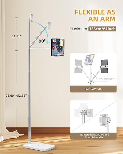 【Free Your Hands】Whether you're standing, sitting or lying down, this tablet floor stand helps you find the perfect view for watching movies, reading ebooks, or playing games. It also helps you take photos, videos or live streams
