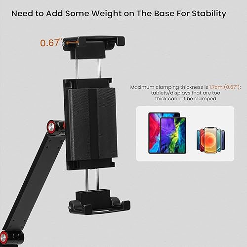 Tips---Our stand holder for kindle with a maximum load-bearing capacity of 5.5lb;the clip is 1.3'' in shallow,not work for some deep portable monitors,which thickness is over 0.67'',such as AOC 16" USB;not work for XPPen/XOPPOX/Huion Kamvas 16 Pro 15.6'' drawing tablet and CURVED MONITOR,pls note that.