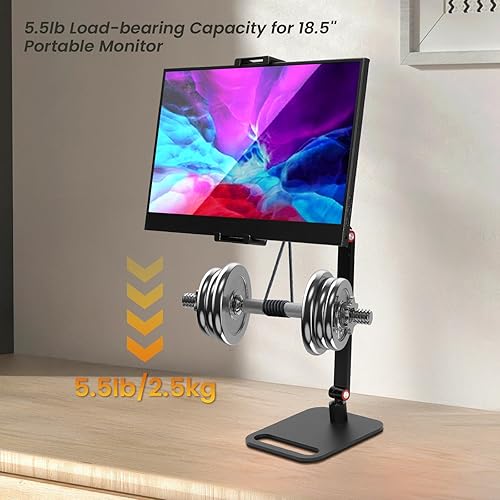 Upgraded Heavier Base Without Toppling---We have weightened the base of portable screen stand,which can support you larger size portable monitor,more stable and studier.