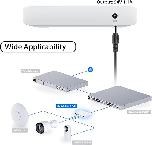 【Compatibility 】 54V 1100mA Power Adapter for Ubiquiti UniFi Switch Lite USW-Lite-8-POE, UbiQuiti UniFi Switch Ultra 60W 8 Port Layer 2 USW-ULTRA-60W, Ubiquiti Networks Lite 8 PoE USW-LITE-8-POE/UniFi Cloud Gateway Fiber UCG-Fiber (30W) Desktop 10G Cloud Gateway 54 Volt DC 1.1A 59.4W Power Supply Charger, Ubiquiti Network UniFi Cloud Gateway Fiber UCG-Fiber (30W) Desktop 10G Cloud Gateway Power Cable