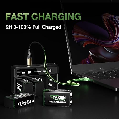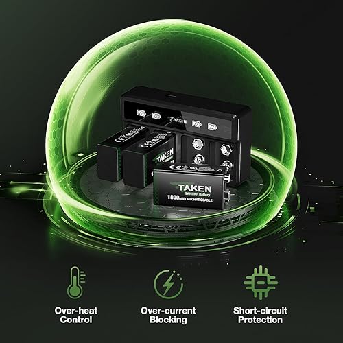 RECHARGEABLE & COST-EFFECTIVE: Cut costs and minimize waste with our eco-friendly 9v rechargeable batteries. They're built to last, offering up to 2,000+ charge cycles, making them a cost-effective, green alternative to disposable batteries—no need to replace them as often, enjoy long-term savings and sustainability! Compatible with TAKEN 9V battery chargers
