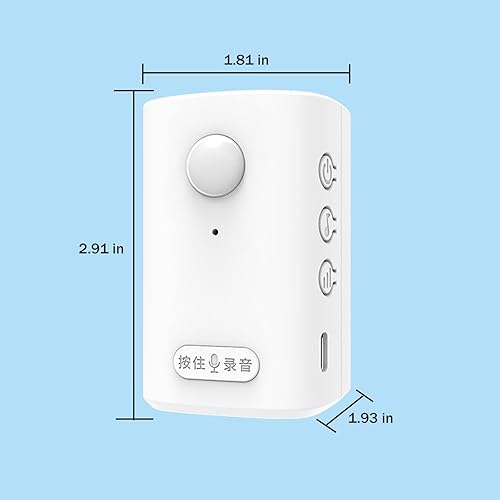 Recording operation is simple:Long press the recording button, align the recording hole to make a sound, release the button to broadcast the recording when finished.