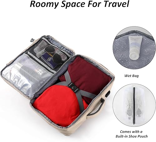 【Water-Resistant & Practical】Crafted from lightweight, water-repellent material, the small travel backpack resists spill. Includes a wet pouch, shoe compartment, easy to clean