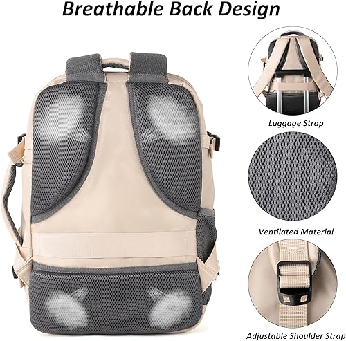 TANTOMI Small Travel Backpack for Men Women, 15.6 inch Latop Backpack with USB Charging Port & Shoe Pouch, 20L Bag Flight Approved, Daypack for Weekender Work Business, Black(Beige)