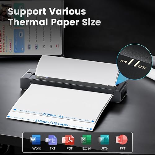 TATTMUSE Portable Printer Wireless for Travel, 2025 Upgraded Inkless Thermal Printers Support 8.5" X 11" US Letter & A4 Size, Mobile Printer Compatible with iPhone Laptop for Home Car Office School
