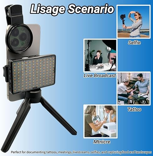 【Application Scenarios】Equipped with a silicone phone holder and tripod compatibility, it provides stable handheld or static shooting. Easily attaches to a phone or computer (you'll need your own clips to attach to your camera). Perfect for documenting tattoos, meetings, livestreams, selfies, and capturing food and landscapes. It's a powerful social media tool, enhancing your visual impact and helping you earn more likes.
