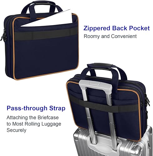 Comfortable Carry & Travel Ready:Equipped with an adjustable padded PU shoulder strap and dual wrapped bale handles, this laptop briefcase provides comfort for daily use. A back luggage strap allows easy attachment to rolling suitcases, making it suitable for business travel or commuting
