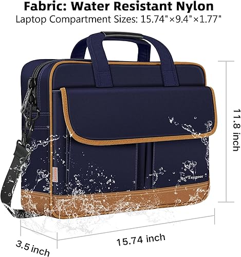 Taygeer Briefcases for Men, Water Resistant Laptop Bag 15.6 Inch for Business, Travel Office Crossbody Carry On Laptop Carrying Case, Messenger Shoulder Bag Fit 15.6 Inch Notebook/Computer, Blue Brown(Blue Brown,15.6 Inch)