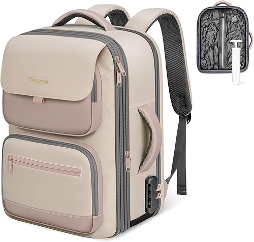 Advanced Security & Anti-Theft Features: Travel safely with this vacuum seal carry on backpack featuring RFID-blocking compartments to protect credit cards and passports. A built-in password lock of compression backpack for travel deters unauthorized access, and a anti-theft pocket keeps valuables discreet. These safety features of vacuum compression backpack make it a reliable companion for crowded airports, train stations, or public transport, giving you extra protection wherever you go
