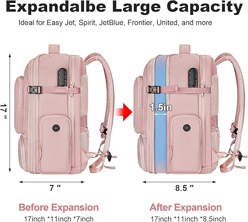 Airline Approved & Expandable: The compression backpack for travel is 17.5×12×7.5 inches (expands to 9.5 inches) for flexible storage on weekend trips, business travel, or vacations. Fits most airline personal item limits, including EasyJet, Spirit, JetBlue, Frontier, and United. The luggage strap of carry on backpack vacuum seal secures to rolling suitcases for easy airport mobility. The vacuum travel backpack's TSA laptop compartment with thick padding ensures safe storage and quick screening