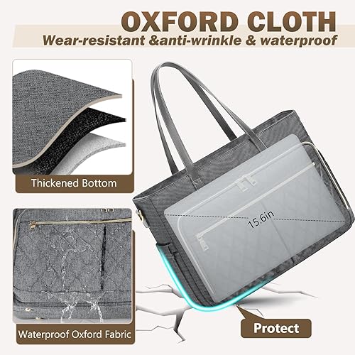 Teacher Tote Bag 15.6 Inch Laptop Bag for Women Work Bag with Accordion File Organizer Pocket & Insulated Pocket Nurse Bag(Dark Gray)
