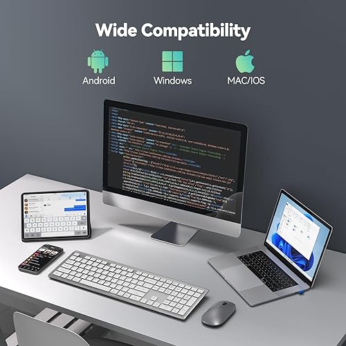 【Broad Compatibility】TECKNET slim wireless keyboard compatible with Windows, iOS, macOS, and Android, this wireless bluetooth keyboard is perfect for a wide range of devices including iPads, tablets, smartphones, laptops, desktops, and smart TVs. For devices without Bluetooth, simply use the included USB receiver for a stable connection.
