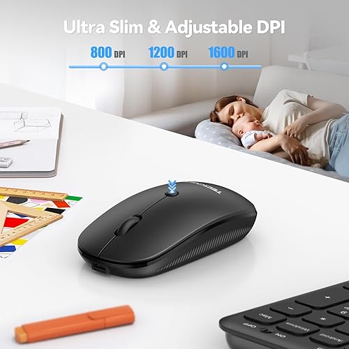 Ultra-thin Ergonomic Design: The wireless keyboard and mouse feature a streamlined, matte black ABS body, perfectly complementing any modern desktop aesthetic. The ultra-thin and lightweight keyboard is paired with a mouse that supports three adjustable DPI settings (800/1200/1600), wireless keyboard mouse combo allowing you to freely choose your preferred cursor speed. The symmetrical design of the wireless mouse effectively reduces wrist strain, making it easy to use for both right-handed and left-handed users.