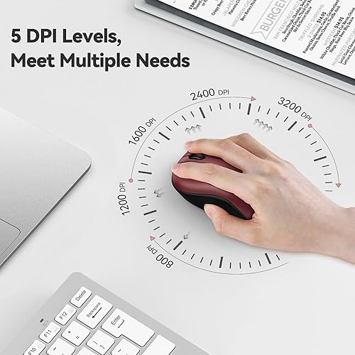 【5 Levels Adjustable DPI】 This wireless mouse for laptop has 5 DPI adjustable levels 800/1200/1600/2400/3200 for you to change the sensitivity depend on your activities.