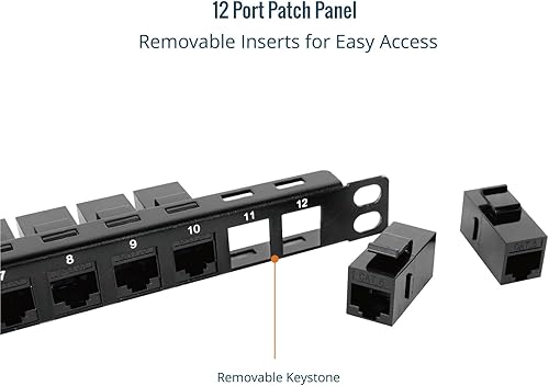 Flexible Modular Design: Features 12 removable keystone jacks, allowing you to easily replace individual ports without changing the entire panel—perfect for easy upgrades, repairs, and customized configurations