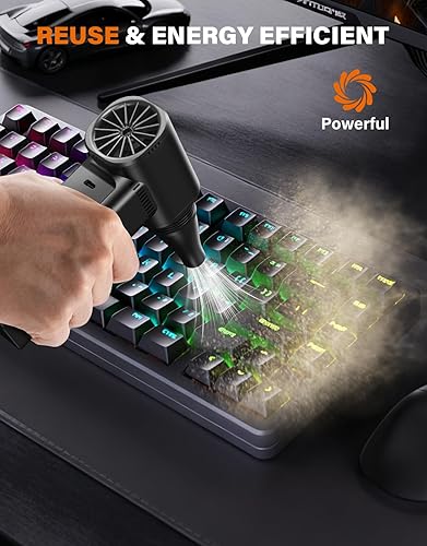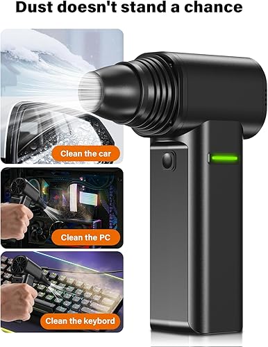 • Goodbye Dust, Hello Turbo Power: Forget canned air—this monster will obliterate dust in your keyboard, PC case, fans, or anything else that dares to collect particles. Tornado compressed air duster ca be used as a substitute for a single-use compressed air cans and leaf blower,and the Midnight Black color gives it a sleek, tactical look