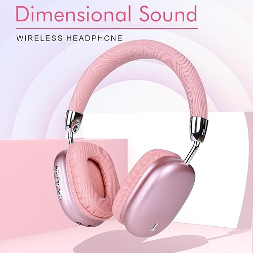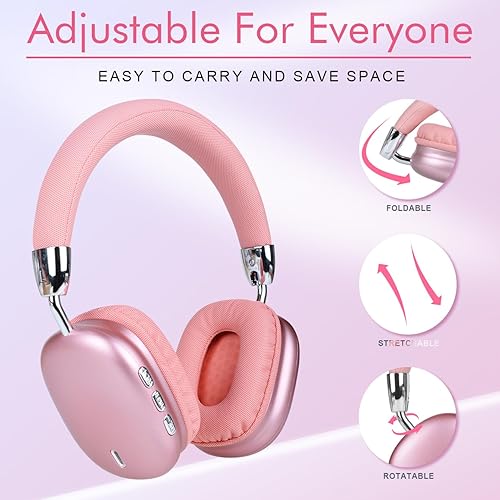 TH B36 Wireless Headset,Foldable Bluetooth Headphones with Microphone,Hi-Fi Stereo Sound, 6-8H Battery Life, Soft Breathable Earmuffs,for Phone PC Laptop Gaming (Black)(Pink)