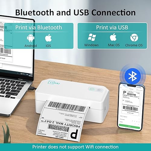 USB CONNECTION FOR PC&LAPTOP - Impresora termica supports to print thermal labels on Windows and Mac computer and laptop with USB connection. Note: PC and laptop only work with USB connection. This thermal printer is compatible with Win2003/ Win XP/ Win7/ Win8/ Win10/ Mac OS and Chrome OS system. One-click design eliminates complex operation issues, very user friendly for the ones who is not so much tech navvy