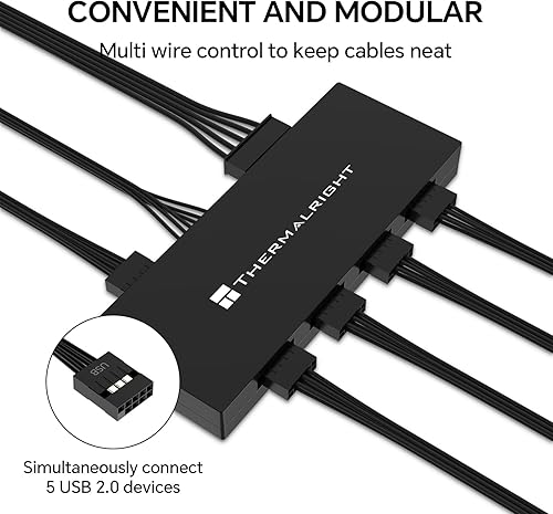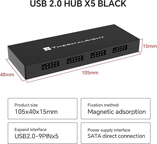 Thermalright Interal USB 2.0 Hub X5, SATA Powered, Magnetic Mount, 9-Pin USB Expansion for PC Motherboard (Black)(Black)