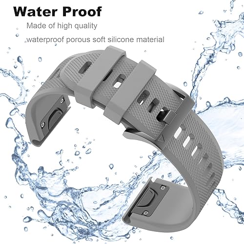 Premium Silicone Material -- Use great quality silicone material, wrist-friendly, comfortable, waterproof, lightweight and durable, a great affordable option for your Fenix 5 6 7 watch accessories.