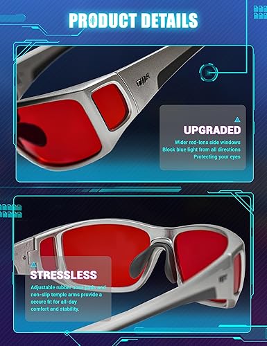 Comment on "TIJN Sonia Sleep Glasses for Blue & Green Light Blocking,Red Lens with Dual AR Coating,Wraparound Frame for Gaming Screen(06. Upgraded- Metallic Silver,Max Protect- Red Lens)"