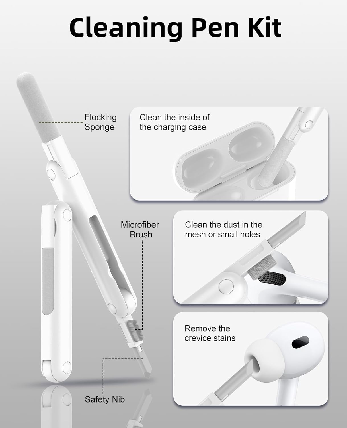3-in-1cleaner kit: Our protective case comes with a cleaner kit for airpod. The tip can clean deep crevices, the soft microfiber brush can clean stubborn dirt from earbud holes, and the velvet sponge can clean the charging case, ensuring your AirPods Pro 3 stay clean and new
