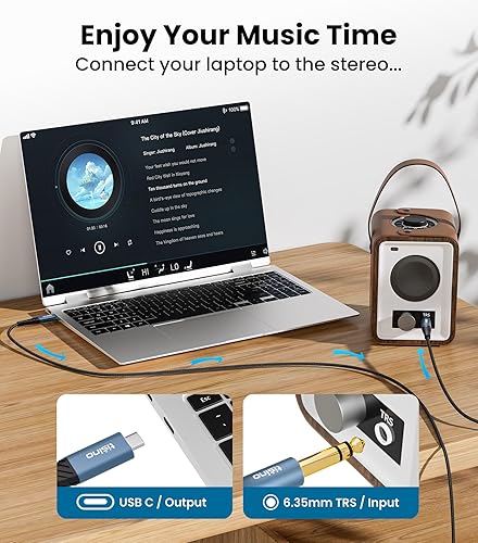 With this usb c to 1/4 inch audio cable, you can connect the audio signal from your smartphone, tablet, or laptop with a USB-C port output connector to your home Hi-Fi system, car stereo radio, stereo, speakers, mixer, amplifier, or other device equipped with a 1/4-inch TRS to play music. Its plug-and-play functionality ensures smooth and seamless audio transmission without the need for additional software, perfect for driving, family gatherings, office meetings and more.