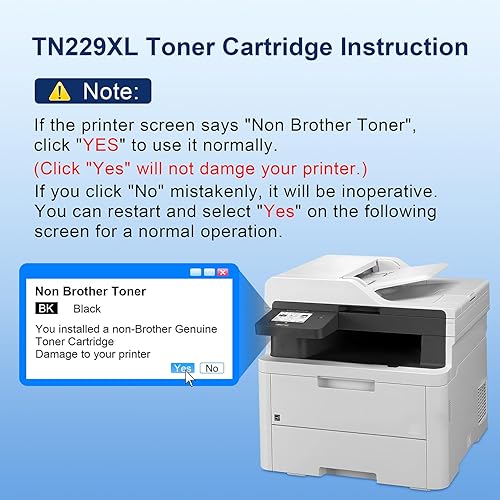 Comment on "TN229XL 229XL Toner Cartridges 4 Pack Compatible for Brother TN229XL TN229 Toner Use for HL-L3220CDW HL-L3280CDW MFC-L3720CDW HL-L3300CDW HL-L3295CDW Printer (4 Pack, Black Cyan Magenta Yellow)"