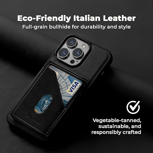 Tony Perotti Italian Leather MagSafe Wallet Card Holder - RFID Blocking, Eco-Friendly Vegetable-Tanned Leather, Quick Access Pop-Up Card Slider, Fits 7 Cards, iPhone Mag Safe Wallet Men(Black,Non-personalized)