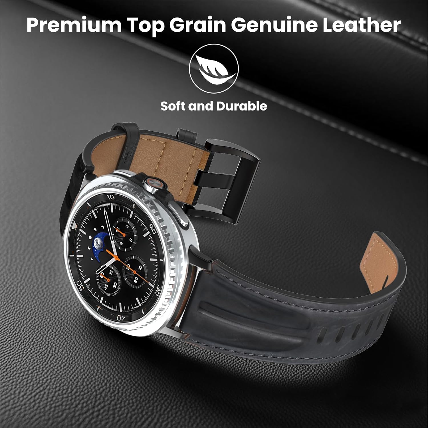 Comment on "Top Grain Genuine Leather Band Compatible with Samsung Galaxy Watch 8 Bands 40mm 44mm/Watch 8 Classic 46mm Men Women, Wide Rugged Metal Connector Strap for Galaxy Watch 8 (2025)(Black-Black)"