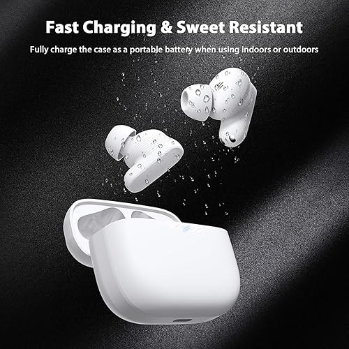 Ergonomic Design Sweet Resistant: Designed for comfort, stay protected from dust, sweet, light rainy day, ensuring reliable performance in various environments and a snug fit for all-day wearing, comes with ultra soft S M L eartip choices for all groups, carrying case, manual, charging cable, the USB C fast charging case design with strap hole, so you can add a charm for decoration or a strap for convenient carrying to prevent losing the earbuds easily
