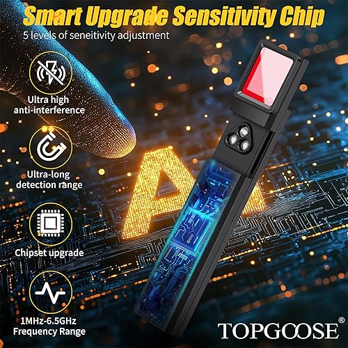 TOPGOOSE Hidden Camera Detectors, Camera Detector with 5 Levels Sensitivity 4 Modes, Portable Mini Design Spy Camera Detector for Hotel Bathroom Office Car Travel, 30H Working Time