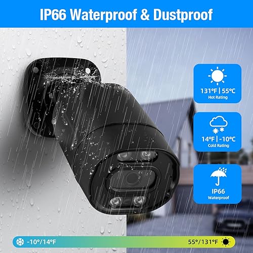 【IP66 Weatherproof, indoor and outdoor use】Our security camera system are made of high-quality metal aluminum material, can withstand the worst outdoor conditions, use in rain and snow without worry, with excellent 2592P HD, monitor your details 24/7, even at night, can help protect your property and loved ones.