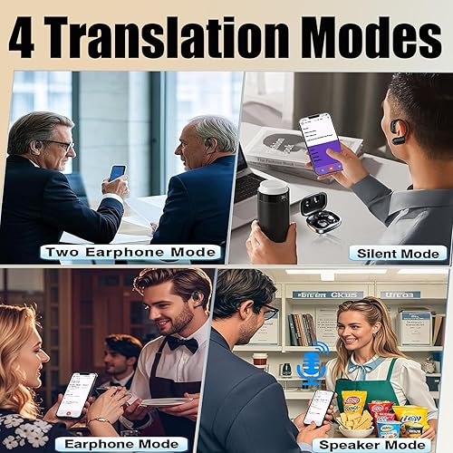 Unique Translation Modes:In Dual-Ear Mode, each person wears one earbud for natural, real-time conversations—ideal for one-on-one chats, such as speaking English and hearing the Spanish translation. (Languages are selectable.) Earbud Mode: Speak into your phone and hear the translation through the earbuds. Silent Mode: Spoken content is translated and displayed as text on your phone screen—ideal for quiet environments or when audio isn’t needed.