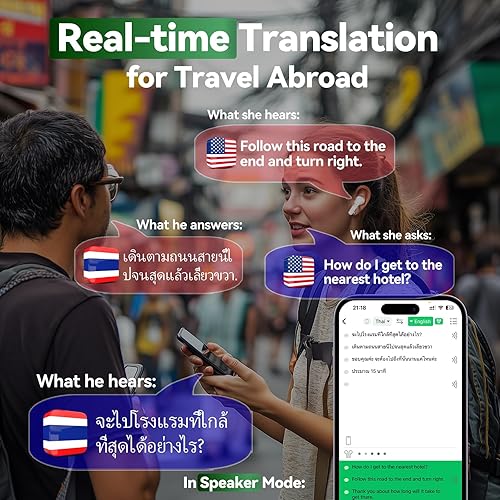 SPEAKER MODE FOR TRAVEL – Use as an audífonos traductor de inglés español or portable voice translator; translations play aloud from your phone without sharing earbuds—perfect for restaurants, shops, or taxis.
