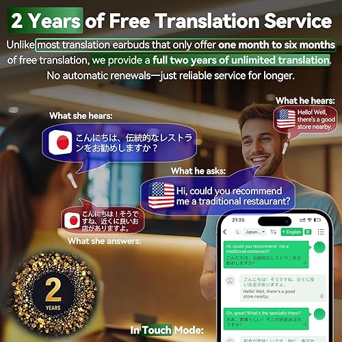 ENTEDNDED 2 YEARS FREE TRANSLATION SERVICE INCLUDED – Our translator earbuds real time offer 24 months of unlimited access, far exceeding typical language translation earbuds with only 1–6 months of service.