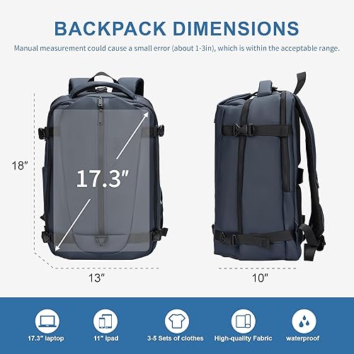 Travel Backpack for Men and Women, Flight-Approved Carry-On Backpack with Laptop Compartment; Large-Capacity Personal Item for Business, Work, School, or Weekend Trips (Black).(Blue)
