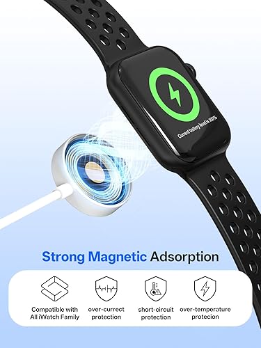【Magnetic iWatch Charger】Very simple to charge your apple watch, strong magnetic adsorption, just hold the connector close to the back of the watch, and the iWatch magnetic will automatically pull it into place to steadily charge your apple watch. (Note:1,Please take off the watch case when charging the iwatch.2,To better charge your device,please use a 5V/3A adapter)