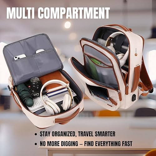 Travel Laptop Backpack – Expandable Carry-on, USB Charging Port, TSA 15.6” Laptop, Executive & College Backpack for Women & Men, Cream