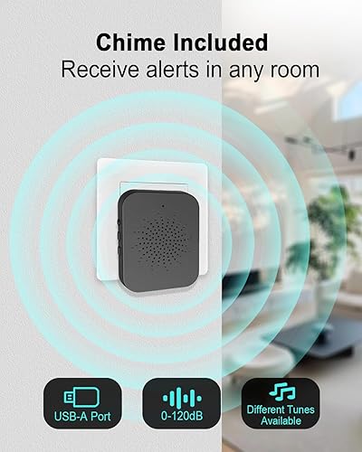 [ Chime Included ] Simply plug the chime into any standard USB port for instant, real-time doorbell. No complicated setup--just plug and enjoy loud, clear notifications throughout your home. Perfect for bedrooms, offices, or any space where you need to hear visitors arrive.